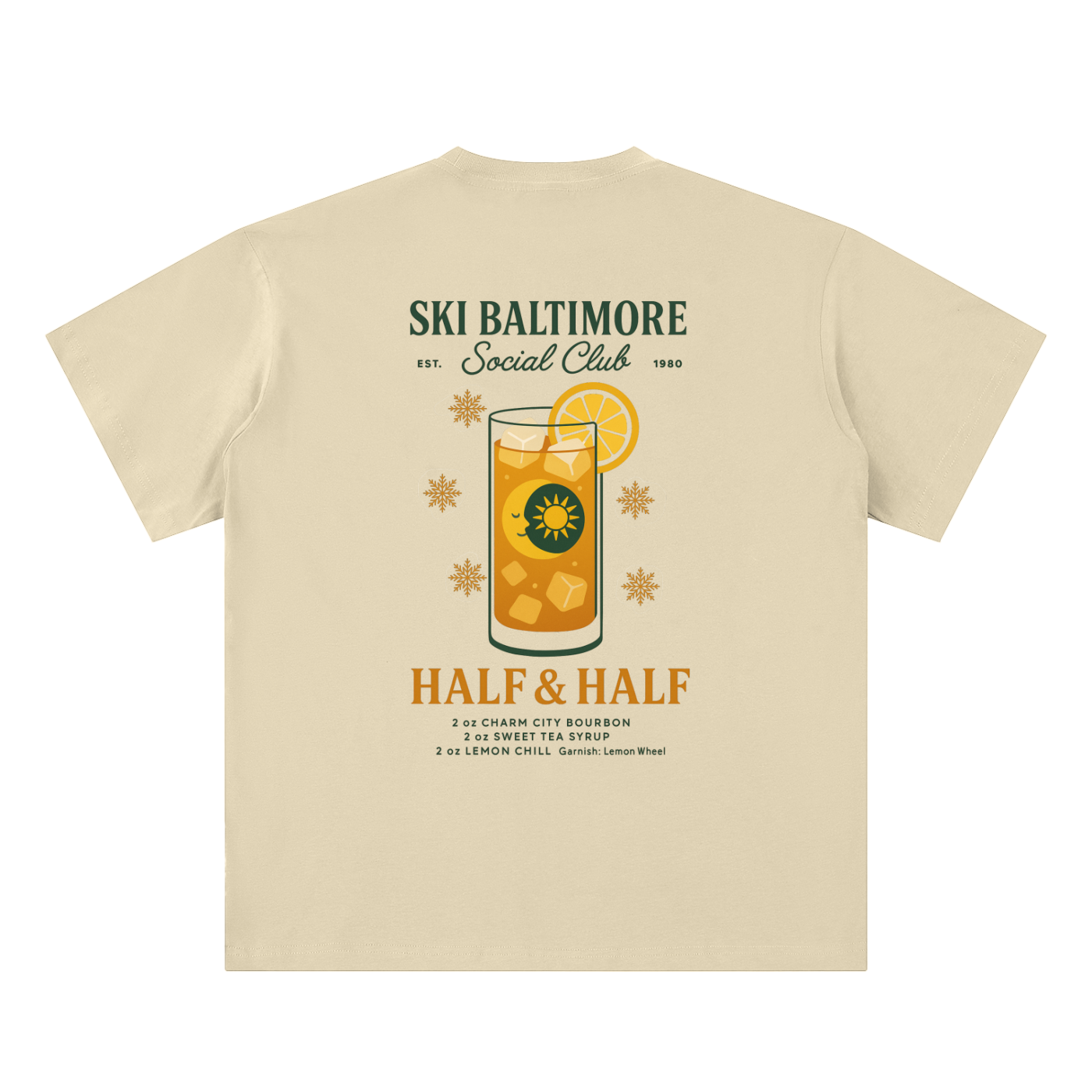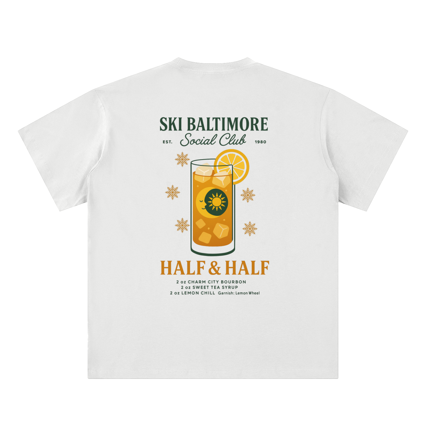 The Half & Half Tee captures the essence of Baltimore — where contrasting elements come together in perfect harmony. Inspired by the city’s iconic blend of lemonade and sweet tea, this tee is a wearable tribute to local flavor and timeless cool. Crafted from 100% sueded cotton, it offers a smooth, soft touch with a relaxed silhouette. The Ski Baltimore snowflake marks the front, while the back features the Social Club’s “Half & Half” cocktail design — a bold, refreshing graphic with the recipe and a nod to Baltimore tradition.